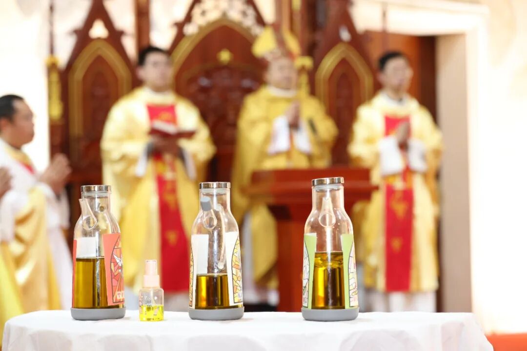 主教联同所有司铎祝圣了“病人圣油”、“候洗圣油”和“圣化圣油”。圣洗圣油使候洗者藉着傅油而坚强,圣化圣油使领受者被赋于天恩圣神,病人圣油则减轻病人的痛苦。